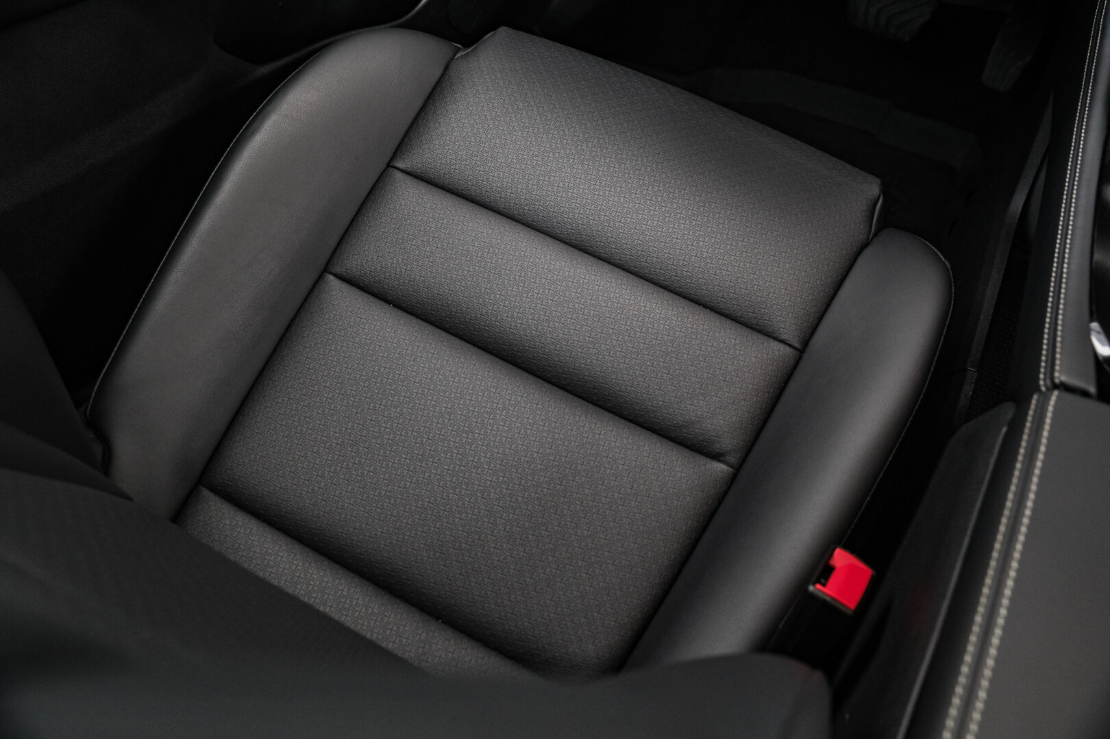 - Sedadla potažená černu látkou a syntetickou kůží